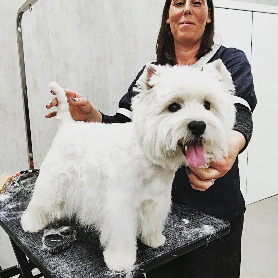 Tijdens een puppygewenning laten we de hond kennismaken met de trimsalon. De pup ervaart dit zo als een leuke, speelse ervaring en kan de geluiden en geuren gewoon worden.
